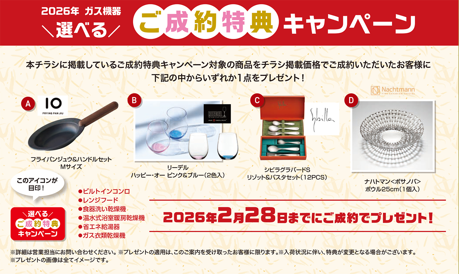 さらにキャンペーン対象商品のご成約で豪華キッチン用品or食器をプレゼント!