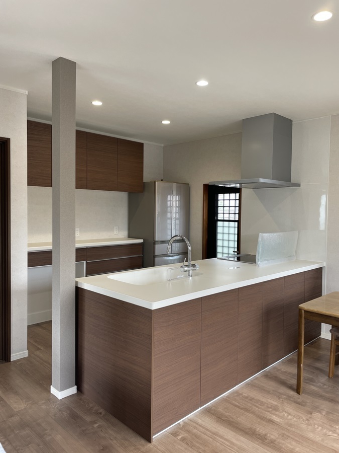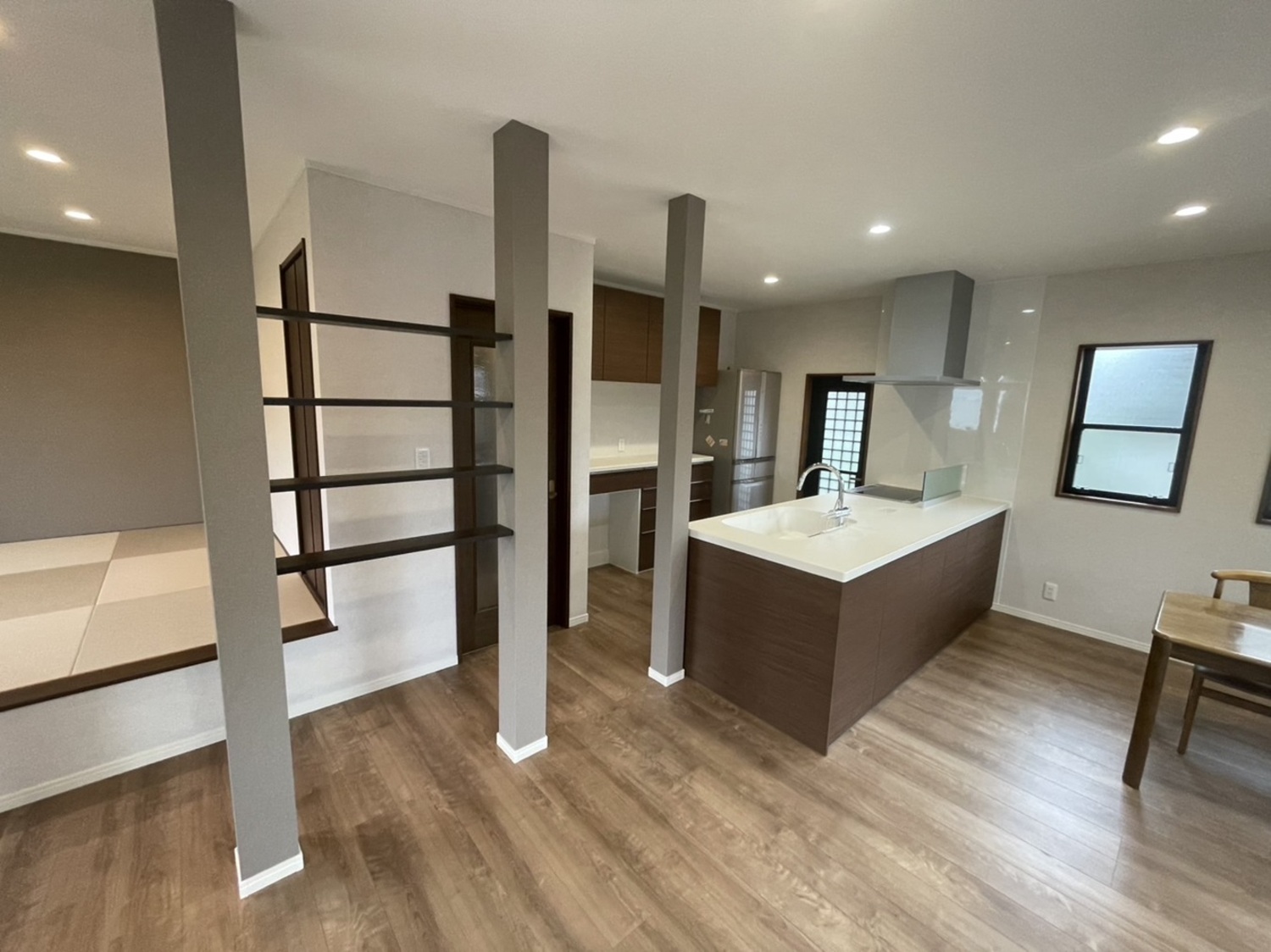 ホーム フォトギャラリー 部位別 すべて キッチン・リビング・和室をつなげて広々LDKを実現! キッチン・リビング・和室をつなげて広々LDKを実現! 栃木県 A様邸 部位別|すべて キッチンの壁とリビングに隣接する和室の壁を撤去し、広いLDKになりました。 全体的に落ち着いた色味で統一し、既存のまま残したリビングの扉とも雰囲気が合います。 Before 画像のみを表示全 10 枚中 1 枚目を表示Next ≫ ダイニング側の全面を収納に。キッチンやダイニングで使うものをたっぷりと収納できます。 キッチン:LIXIL シエラS画像のみを表示全 10 枚中 2 枚目を表示≪ Prev|Next ≫ 構造上撤去ができない柱は残して、クロスで仕上げました。 Before 画像のみを表示全 10 枚中 3 枚目を表示≪ Prev|Next ≫ 背面収納にオープンタイプのキャビネットを設け、ゴミ箱やワゴンがスッキリと納まります。画像のみを表示全 10 枚中 4 枚目を表示≪ Prev|Next ≫ キッチンにいながらもダイニングやリビングとのコミュニケーションがとれる、ペニンシュラスタイル。 Before 画像のみを表示全 10 枚中 5 枚目を表示≪ Prev|Next ≫ 和室を小上がりの畳コーナーに。灰桜色の畳でとても上品な空間になっています。 Before 画像のみを表示全 10 枚中 6 枚目を表示≪ Prev|Next ≫ Before 画像のみを表示全 10 枚中 7 枚目を表示≪ Prev|Next ≫ 石調のクッションフロアと石目調のモカグレーの壁紙で、まるでホテルのような洗面室です。 洗濯機と洗面化粧台の位置も変えました。 Before 画像のみを表示全 10 枚中 8 枚目を表示≪ Prev|Next ≫ クロスを貼替えるタイミングで、既存のニッチ収納を塞ぎました。 Before 画像のみを表示全 10 枚中 9 枚目を表示≪ Prev|Next ≫ 玄関ホールから廊下もフローリングを上張りし、クロスを貼替ました。 Before 画像のみを表示全 10 枚中 10 枚目を表示≪ Prev 一覧へ戻る タイプ別 部位別 すべて 戸建 戸建リノベーション オフィス店舗 賃貸住宅 マンション マンションリノベーション 中古再販 すべて キッチン LD トイレ エクステリア 洗面 浴室 玄関